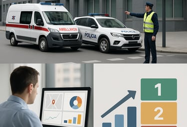 • Plataformas com CAD, GIS, sensores IoT, SCADA e dashboards de incidentes.